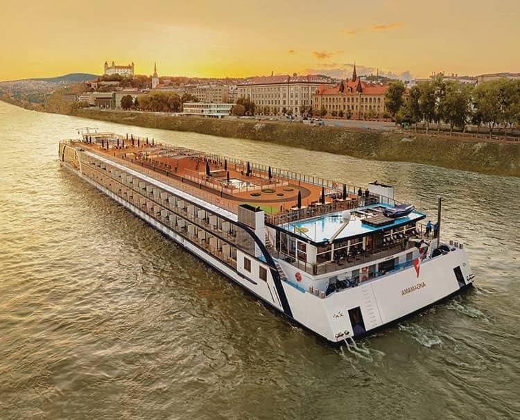 Continuously innovating the river cruise experience, we were the first to offer twin-balcony staterooms, complimentary bikes, a full-sized pickleball court, and a complimentary multi-course specialty restaurant, The Chef's Table. As industry leaders, we work to minimize our impact on the world’s rivers, reducing single-use plastics across our fleet and installing solar panels on AmaMagna.